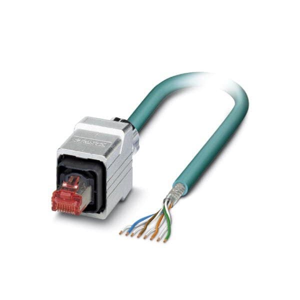 Assembled Ethernet cable CAT6 shielded 4-pair AWG 26 stranded 7-wire RAL 5021 water blue RJ45 plug/IP67 push-pull metal housing on free conductor end line length 5 m