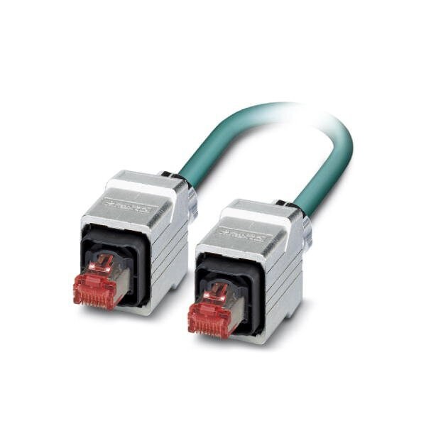 Assembled Ethernet cable CAT6 shielded 4-pair AWG 26 stranded 7-wire RAL 5021 water blue RJ45 plug/IP67 push-pull metal housing on RJ45 plug/IP67 push-pull metal housing line length 5 m