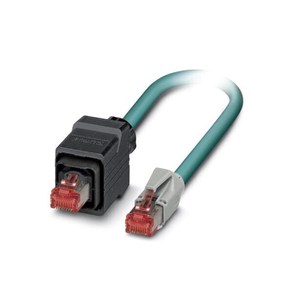 Assembled Ethernet cable CAT6 shielded 4-pair AWG 26 stranded 7-wire RAL 5021 water blue RJ45 plug/IP67 push-pull plastic housing on RJ45 plug/IP20 line length 5 m
