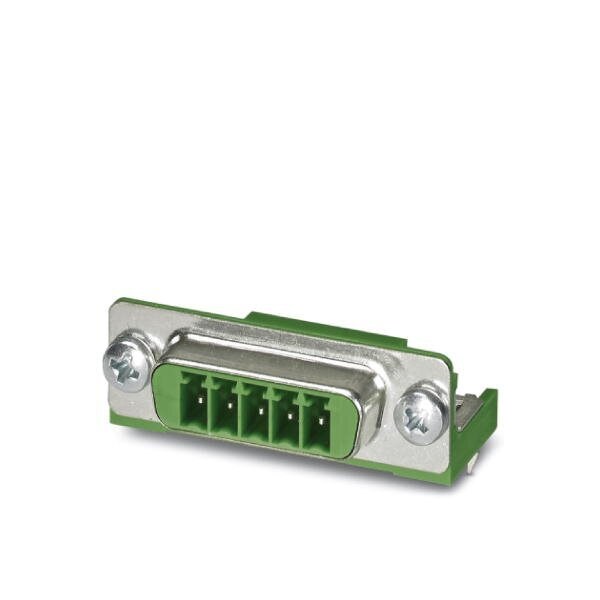 POWER-SUBCON header for mounting side 5-pos. shielded green for wall thicknesses up to 2.0 or 4.5 mm with spacer pin SW 5L5/4-40 UNC-M 3 x 8