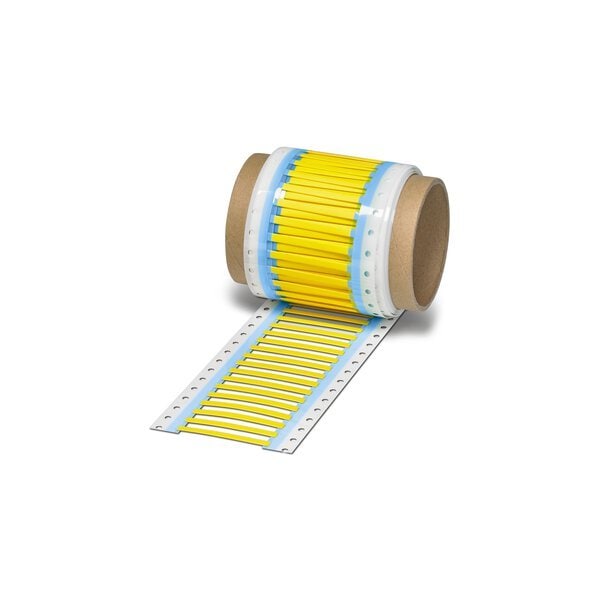 Shrink sleeve Roll yellow can be labeled with: THERMOMARK ROLLMASTER 300/600 THERMOMARK X1.2 THERMOMARK ROLL X1 THERMOMARK ROLL 2.0 THERMOMARK ROLL: without print perforated mounting type: slide-on cable diameter range: 0.8 ... 2.4 mm lettering field size: 60