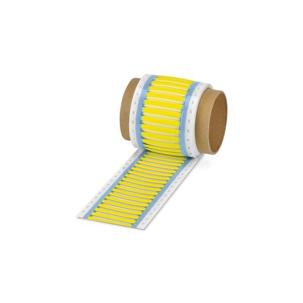 Shrink sleeve Roll yellow can be labeled with: THERMOMARK ROLLMASTER 300/600 THERMOMARK X1.2 THERMOMARK ROLL X1 THERMOMARK ROLL 2.0 THERMOMARK ROLL: without print perforated mounting type: slide-on cable diameter range: 1 ... 3.2 mm lettering field size: 60 x
