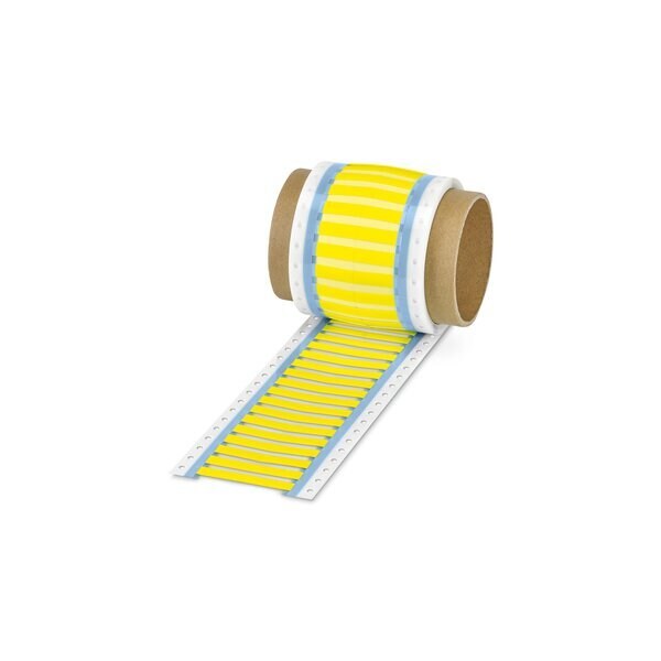 Shrink sleeve Roll yellow can be labeled with: THERMOMARK ROLLMASTER 300/600 THERMOMARK X1.2 THERMOMARK ROLL X1 THERMOMARK ROLL 2.0 THERMOMARK ROLL: without print perforated mounting type: slide-on cable diameter range: 1.6 ... 4.8 mm lettering field size: 30