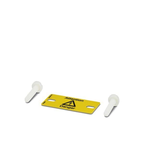 Warning label Plate orange labeled: Lightning flash and warning in English mounting type: screw rivet for terminal block width: 14 mm diameter: 0 mm