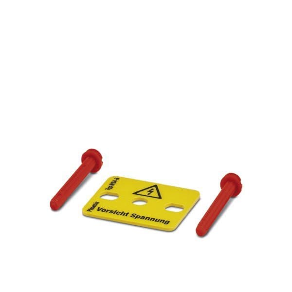 Warning plate with 2 plastic screws across 4 terminal blocks pitch 6 mm