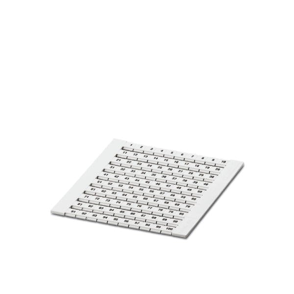 Zack marker strip Sheet white labeled printed horizontally: consecutive numbers from 1 ... 100 mounting type: snap into flat marker groove for terminal block width: 6.2 mm lettering field size: 5 x 5.5 mm Number of individual labels: 100