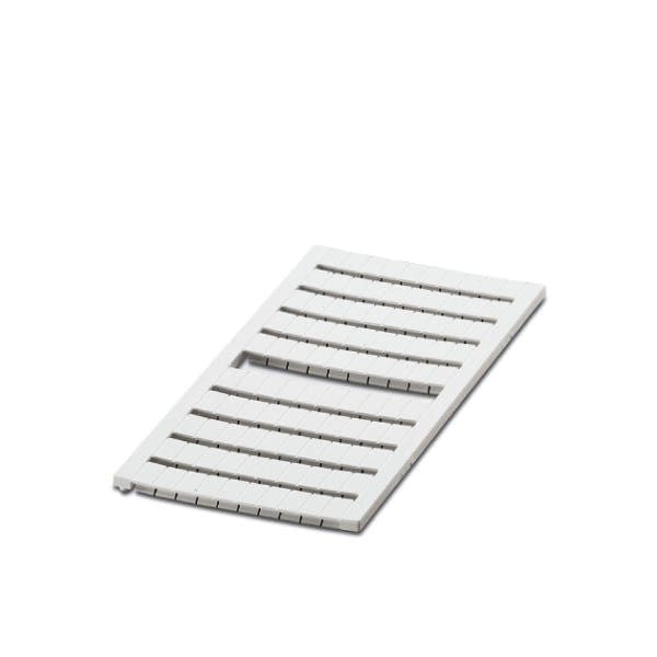 Marker for terminal blocks Sheet white unlabeled can be labeled with: CMS-P1-PLOTTER PLOTMARK mounting type: snap into tall marker groove for terminal block width: 6.2 mm lettering field size: 7.5 x 5.6 mm Number of individual labels: 100