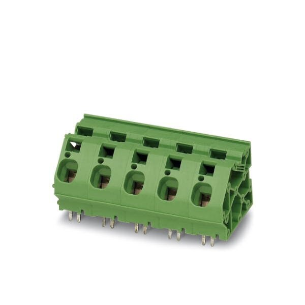 PCB terminal block nominal current: 76 A rated voltage III/2: 1000 V nominal cross section: 10 mm Number of potentials: 1 Number of rows: 1 Number of positions per row: 1 product range: ZFKDSA 10 pitch: 15 mm connection method: Spring-cage connection mounting: