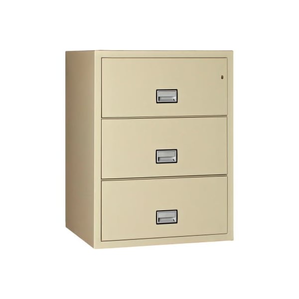 Phoenix safe lateral 31" 3-drawer fire and water resistant file cabinet, putty - lat3w31p protect your documents from fire, water, impact, and smoke damage with phoenix fire and water resistant file cabinets and leave nothing to chance. Every possible insurance feature has been manufactured into these files to produce the highest quality and most affordable cabinets on the market today. a high security key lock is included on every cabinet and includes two keys. The lock is located on the top drawer and immediately unlocks all drawers at once. If you want to leave a drawer continually unlocked a lock-bypass mechanism allows selected drawers to remain unlocked while others stay locked. Fire rated 350 1-hour for documents and paper. These fire files are tested for fire at 1700 degrees fahrenheit and explosion tested at 2000 degrees fahrenheit. This is the industry standard for fire protection, and no file with this rating has ever failed to protect its documents in a fire. Impact rated. The impact test includes dropping the cabinet 30 feet onto concrete rubble, then reheating in the fire. This simulates actual conditions in a fire when the floor gives out. This will also protect you in the event a roof caves in or a concrete wall falls onto the cabinet. Water resistant: water can do as much damage as a fire, and that is why it is important to have this protection. The phoenix labyrinth sealing system and special gaskets prevent water damage caused by fire hose spray or sprinklers. Digital protection: protects computer storage devices such as cds, dvds, usb drives, and memory sticks/cards. anti-tip safety mechanism prevents more than one drawer to open at a time. drawers have a rugged three-way suspension system to provide stability and ensure smooth and easy movement, even when fully loaded. each drawer is a separate insulated container with an inner steel jacket keeping insulation locked and out of sight. This keeps the fire from jumping to another drawer if o