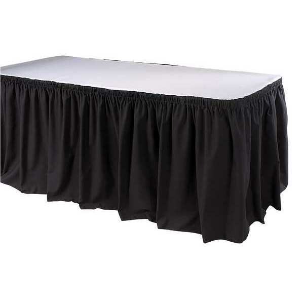 Table Skirt, Product Type Table Skirt, Attachment Type Hook-and-Loop, Color Black, Machine Washable No, Material Poly/Cotton, Overall Height 29 in, Overall Length 13 ft, Pattern Closures and a Shirred Design, Pleat Type Shirred