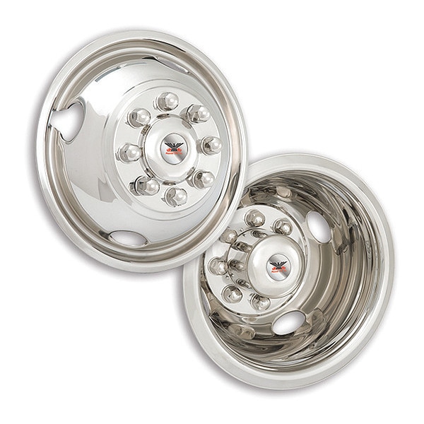 Dual Wheel Simulators, DOT Mount, Material Stainless Steel, Finish Stainless Steel, For Wheel Diameter 16 in, Bolt Circle Diameter 6.5 in, Compatible with Make/Model/Year 1994 to 1998 Dodge 3500 2WD/4WD, 1985 to 1998 Ford F350, Includes Installation Tool, Mounting Hardware, Number of Hand Holes 4, Number of Lugs 8, Standards DOT, Vehicle Type Truck, Vehicle Wheel Style Dual, Package Quantity 4