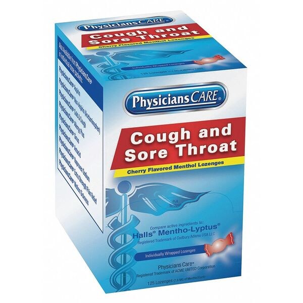 Sore Throat Lozenges, Medicinal Form Lozenge, Medicinal Count 125 x 1, Package Type - First Aid and Wound Care Box, Wrapped Packets, Medicinal Strength Regular Strength, Medicinal Flavor Cherry, Formula Menthol, Package Quantity 125
