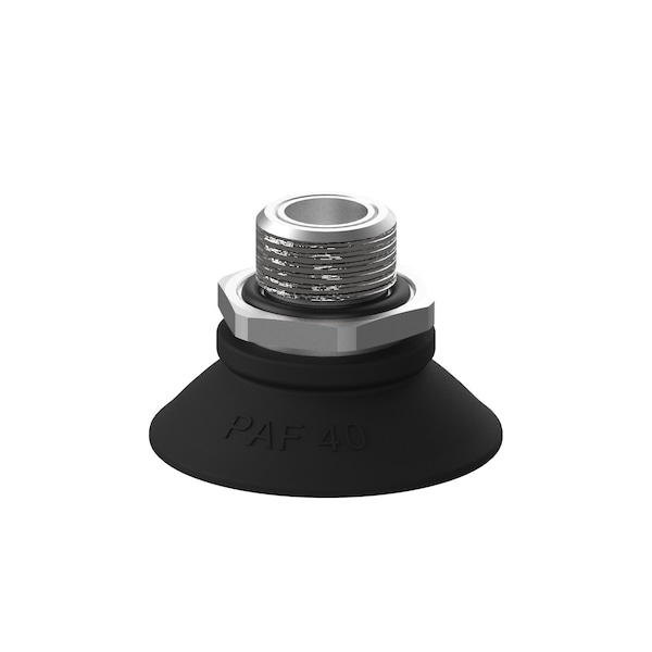 Item Vacuum Pad Assembly, Durometer 60A, Includes Filter Mesh, Maximum Operating Temperature 194 Degrees F, Minimum Operating Temperature 32 Degrees F, Number of Pieces 5, Outside Diameter 40 mm, Pad Color Black, Pad Diameter 40 mm, Pad Material Nitrile/PVC, Pad Type Flat, Port Size 3/8 in, Port Type G, Series PAF, Package Quantity 5