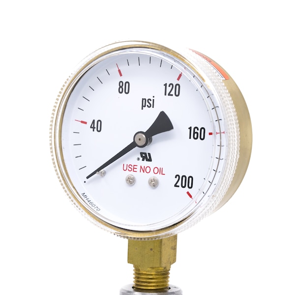 Gauge,2.5"0/200psi,1/4"LM,Brass,UseNoOil