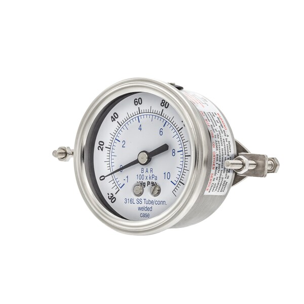 Gauge,2.5",30/0/150psi,1/4"CBM,SS,UClamp