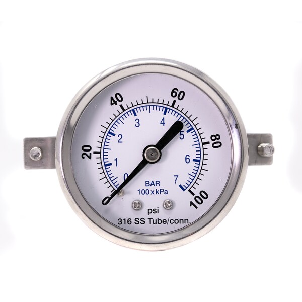 Gauge,2",0/100psi,1/4"CBM,w/U-Clamp,SS
