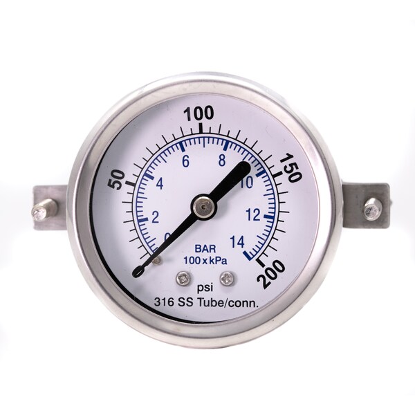 Gauge,2",0/200psi,1/4"CBM,w/U-Clamp,SS