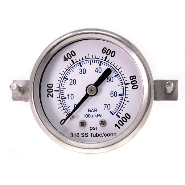 Gauge,2",0/1000psi,1/4"CBM,SS,w/U-Clamp