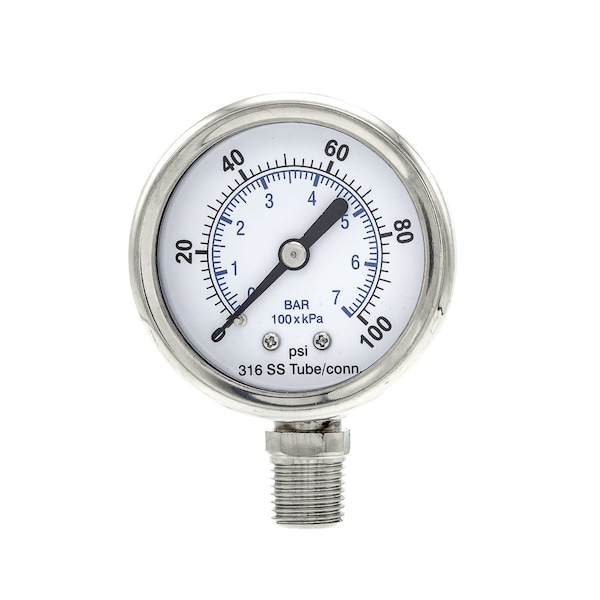 Gauge,2",0/100psi,1/4"LM,SS