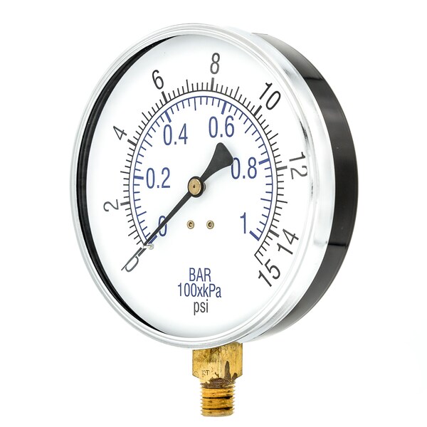 Air Gauge,4-1/2",0-15 psi,1/4" Mount