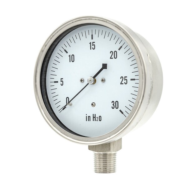 Low Pressure Gauge,4",0-30"WC,1/2"LM,SS
