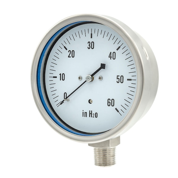 Low Pressure Gauge,4",0-60"WC,1/2"LM,SS