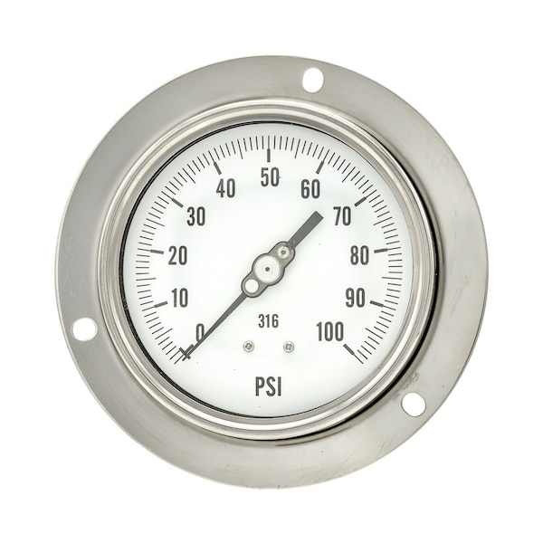 Gauge,4",0-100psi,1/2"LBM,SS,FrontFlange