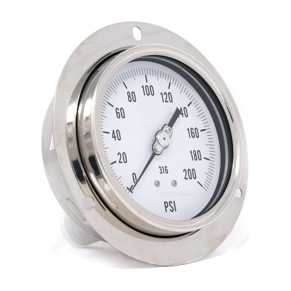 Gauge,4",0-200psi,1/2"LBM,SS,FrontFlange