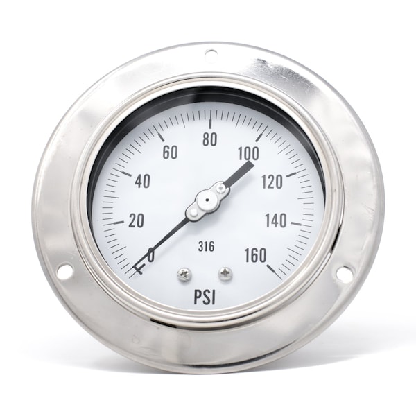 Gauge,4",0-160psi,1/4"LBM,SS,FrontFlange