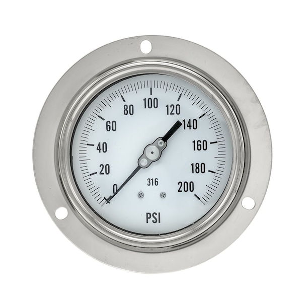 Gauge,4",0-200psi,1/4"LBM,SS,FrontFlange