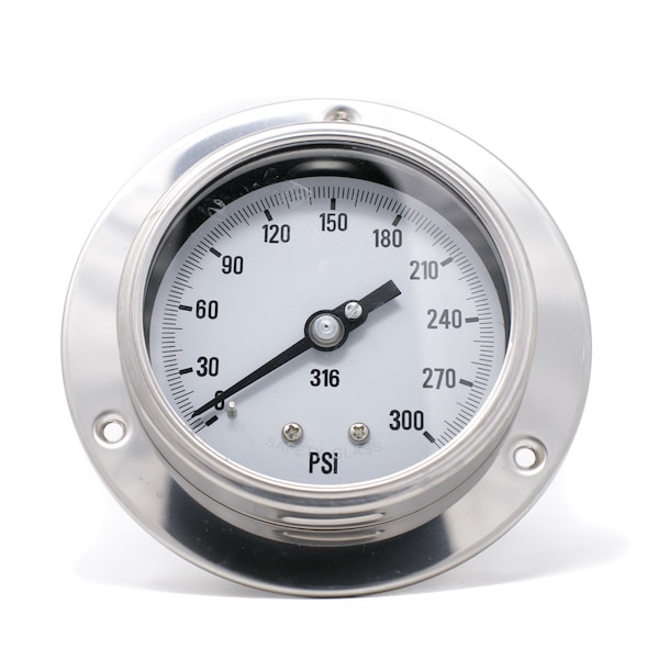 Gauge,4",0-300psi,1/4"LBM,SS,FrontFlange