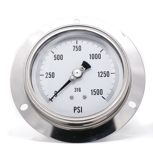 Gauge,4",0-1500psi,1/4"LBM,SS,FrtFlang