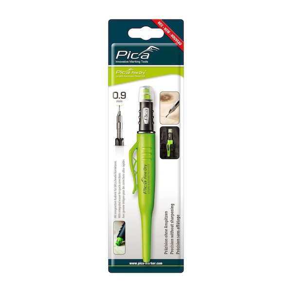 Precision marking with just the push of a button. No need to ever sharpen the Pica Fine Dry with it's special lead diameter of .9 mm to achieve fine and precise markings. Delivered with 5 refills in the chamber.