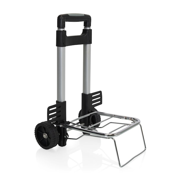 Picnic Time's Trolley is a folding trolley that has a telescoping handle, a stabilizing bar, two expansion bars at its base, and 4 all-terrain wheels. The trolley fits many Picnic Time products, but can also be used to tote any compact belongings you have, up to a maximum weight of 77 lbs. The Trolley is 38 tall when fully erected, 18 when folded.