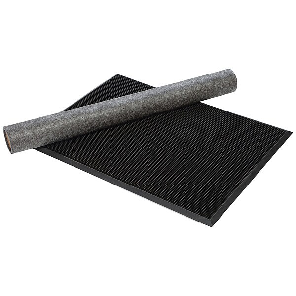 Sanitizing/Disinfecting Mat, Edge Height 1/2 in, Surface Design Carpeted, Finger, Mat Zones Scraping, Drying, Sanitizing, ADA Compliant Yes, Application Construction, Food and Beverage Processing, Grocery/Retail, Health Care/Lab, Industrial; Commercial, Institutional Facilities, Restaurants, Backing Characteristics Adhesive, Base Material Rubber, Edge Style Beveled, For Environment Sanitary, For Surface Type Concrete Surfaces, Quarry Tile, Tile, Indoor/Outdoor Outdoor, Mat Color Gray