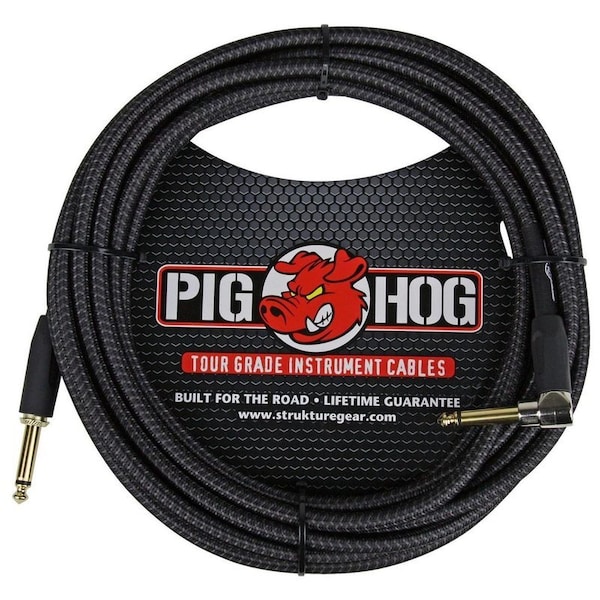 Pig Hog Vintage cables are precisely overbuilt to stand up to the most grueling tour conditions imaginable, in a plethora of styles and colors that will give your rig a unique and vivid voice! Our cables are designed to provide the highest quality performance with outstanding value. We understand your cables need to sound great and perform reliably, night after night, without costing you an arm or a leg! That's why we use a high quality 7mm woven jacket that won't fray, and resists kinking and tangling. Our proprietary OFC conductor technology and robust shielding is designed to ensure your sound is crystal clear, without noise or interference, every time. Each cable is hand tested before shipment. High performance instrument cable Unique, high quality, woven outer covering Gold plated 1/4-in-1/4-in right angle connectors