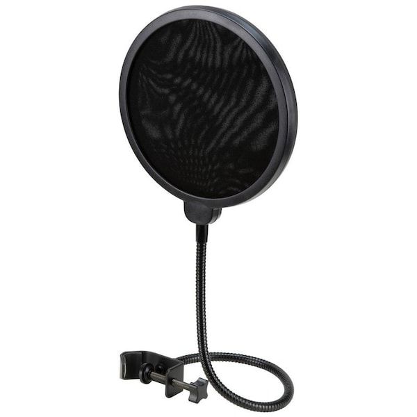 The Pig Hog microphone pop filter makes recording a breeze! The dual-layer pop filter blocks breathy blasts and arrests air movement while allowing sound to slip through easily. This allows you to achieve amazing, clean recordings by preventing plosives and hissing. The adjustable clamp can be attached to a wide variety of stands, and the durable metal gooseneck adjusts to virtually any angle and distance. -5.9 inch diameter dual-layer pop filter. -13.75 inch gooseneck adjusts to virtually any angle and distance. -Clamp adjusts up to 1.5 inches. -