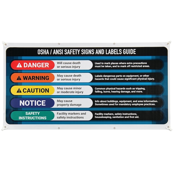 Give your workers a quick and easy reference guide for OSHA/ANSI safety signs and labels with this safety banner for your workplace.