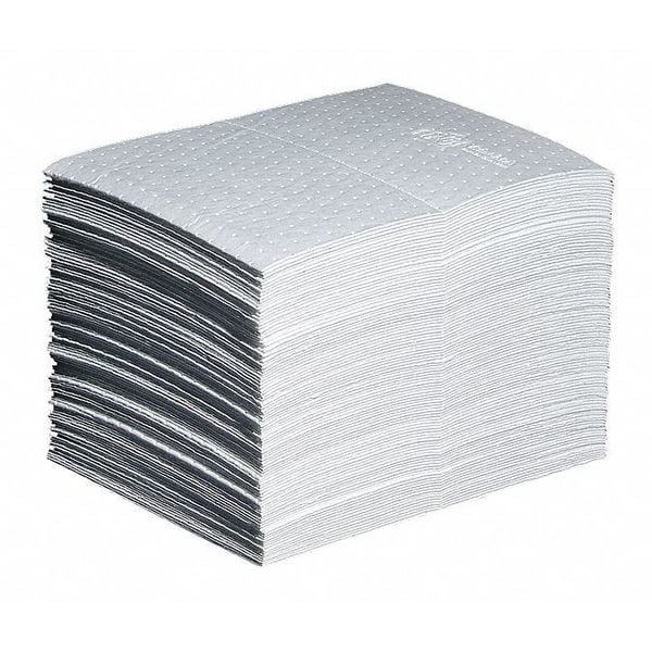 Product Type Sorbent Pad, Fluids Absorbed Fuels, Oils, For Use With Chemical or Metal Type Oil Only, Size 15 in x 20 in, Volume Absorbed Per Pad 28 3/16 oz, Volume Absorbed per Pkg. 22 gal, Color/Pattern White, Material Polypropylene, Number of Layers 8, Perforated Perforated, Perforated Size 10 in x 15 in, Package Quantity 100