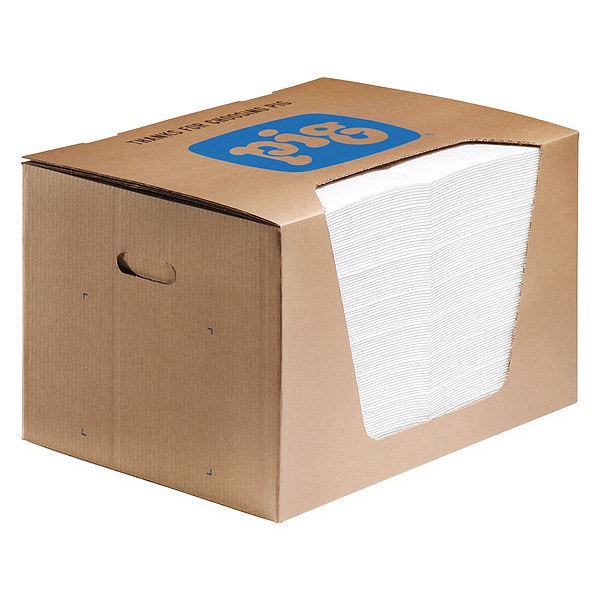 Product Type Sorbent Pad, Fluids Absorbed Fuels, Oils, For Use With Chemical or Metal Type Oil Only, Size 15 in x 20 in, Volume Absorbed Per Pad 28 3/16 oz, Volume Absorbed per Pkg. 22 gal, Color/Pattern White, Material Polypropylene, Number of Layers 8, Perforated Perforated, Perforated Size 10 in x 15 in, Package Quantity 100