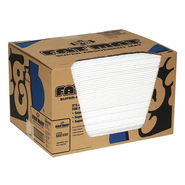 Product Type Sorbent Pad, Fluids Absorbed Fuels, Oils, For Use With Chemical or Metal Type Oil Only, Size 16 in x 20 in, Volume Absorbed Per Pad 56 5/16 oz, Volume Absorbed per Pkg. 22 gal, Color/Pattern White, Material Polypropylene, Number of Layers 16, Perforated Perforated, Perforated Size 8 in x 20 in, Package Quantity 50