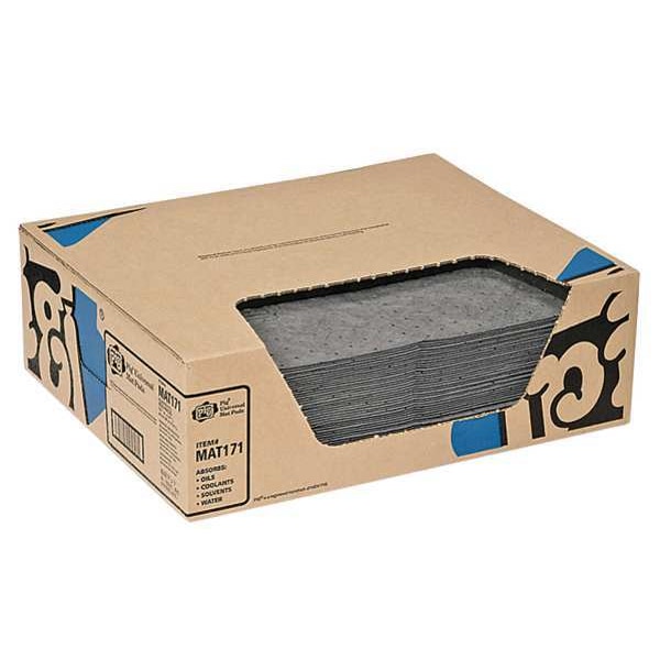 Product Type Sorbent Pad, Fluids Absorbed Universal, For Use With Chemical or Metal Type Universal, Size 15 in x 20 in, Volume Absorbed Per Pad 22 1/2 oz, Volume Absorbed per Pkg. 8 gal, Color/Pattern Gray, Material Polypropylene, Number of Layers 8, Perforated Perforated, Perforated Size 10 in x 15 in, Package Quantity 50