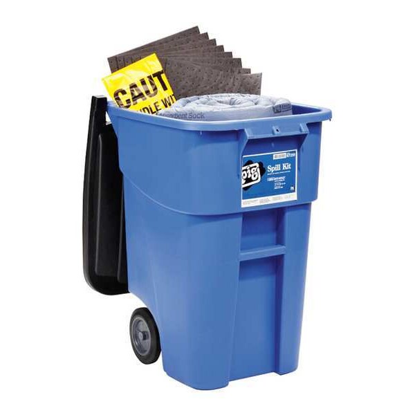 Spill Kit, Fluids Absorbed Universal, Neutralizes Chemical Type Not Applicable, Volume Absorbed Per Kit 37 gal, Container Type Can, 50 gal Container Capacity, 23 5/8 in W x 38 3/4 in H Container Size, Blue, Filled