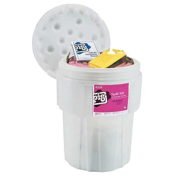 Spill Kit, Fluids Absorbed Acids, Bases, Volume Absorbed Per Kit 39 gal, Container Type Drum, 65 gal Container Capacity, 27 3/4 in W x 37 3/4 in H Container Size, White, Filled, Sorbents Included (40) PIG(R) Harsh Chemical Absorbent Mat Pad (20 in L x 15 in W) (MAT301), (5) PIG(R) Harsh Chemical Absorbent Pillow (16 in L x 17 in W x 2 in H) (HR7015), (5) PIG(R) Harsh Chemical Absorbent Sock (10 ft L x Ext. Dia. 3 in) (PIG(R)301), (8) PIG(R) Absorbent Sock (46 in L x 3 in Dia) (124CR)