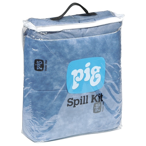 Spill Kit/Station, Fluids Absorbed Water, Volume Absorbed Per Kit 5 gal, Container Type Bag, 0.05 cu ft Container Capacity, 6 3/4 in W x 15 1/2 in L x 17 3/4 in H Container Size, Blue, Filled, Sorbents Included (10) 15 in W x 19 in L Water Absorbent Pads, (3) 3 in Dia x 4 ft L Water Absorbent Socks, Additional Components Included (1) Clear Vinyl Bag, Lockable No, Static Dissipative No, UV Resistant No, Product Weight 6 lb, KIT, Includes Mounting Fasteners No, Land Fill Disposable No
