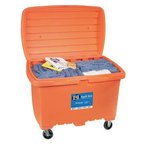Spill Kit, Fluids Absorbed Universal, Neutralizes Chemical Type Not Applicable, Volume Absorbed Per Kit 76 gal, Container Type Chest, Not Applicable Container Capacity, 31 in W x 48 in L x 37 3/4 in H Container Size, Orange, Filled, Sorbents Included (10) Socks (10 ft L x 3 in D), (112) PIG(R) All-Purpose Wipers (13 in L x 11.8 in W) (PR40), (154) Mat Pads (20 in L x 15 in W), (31) Socks (48 in L x 3 in D), PPE Included Not Applicable