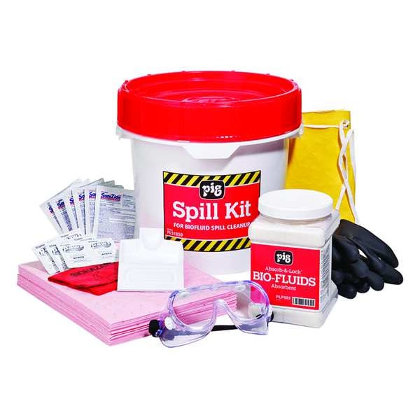 Spill Kit, Fluids Absorbed Biohazardous Liquids, Specialized Applications Biohazard, Neutralizes Chemical Type Not Applicable, Volume Absorbed Per Kit 9 gal, Container Type Bucket, 3 1/2 gal Container Capacity, 12 1/2 in W x 12 1/2 in L x 12 1/2 in H Container Size, White, Filled, Sorbents Included (20) PIG(R) HazMat Mat Pad (9 in x 12 in), (1) Container PIG(R) Absorb-&-Lock(R) Bio-Fluids Absorbent (4 lb.) (PLP503)