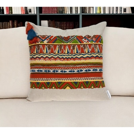Set of Two 20" Aqua Ivory And Natural Striped Cotton And Jute Throw Pillows with Texture, 2PK