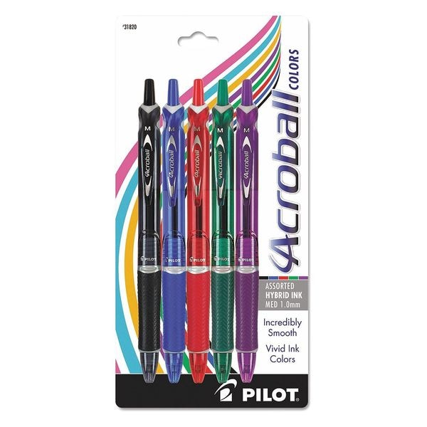 Acroball Colors Advanced Ink Hybrid Gel Pen, Retractable, Medium 1 mm, Assorted Colors, PK5
