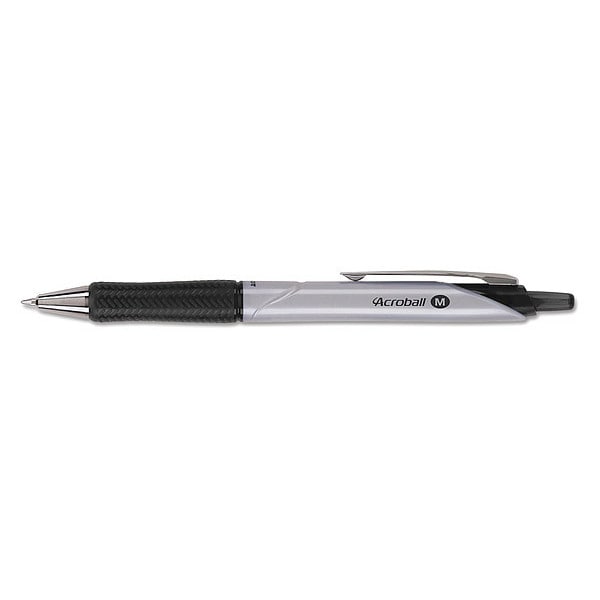 Ballpoint Pen, Pen Tip 1 mm, Barrel Material Plastic, Barrel Color Silver, Pen Grip Textured Cushion, Pen Cap Retractable, Includes Pen Cushion Cushion Included, Pen Ink Color Black, Series Acroball(R) Pro Advanced Ink, Features Smear-Resistant Ink, Water-Resistant Ink, Package Quantity 12